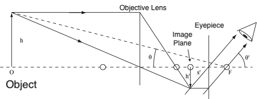 The objective lens creates an image of the object. The eyepiece is then positioned to magnify the image created by the objective lens. Figure 11 is a ray diagram of this statement.