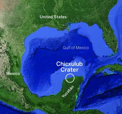 Figure 5: Location of the Chicxulub Crater on the Yucatan Peninsula in Mexico.